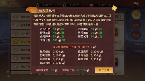 玩家在完成自己的每日活跃任务后,可以帮助其他玩家通关副本或者挑战boss,这样能够获得侠义值。