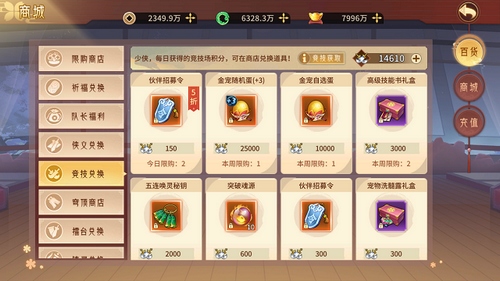 竞技商店优先兑换高级技能书礼盒,其次就是兑换突破魂源和宠物洗髓露礼盒来帮助提升自己的宠物。