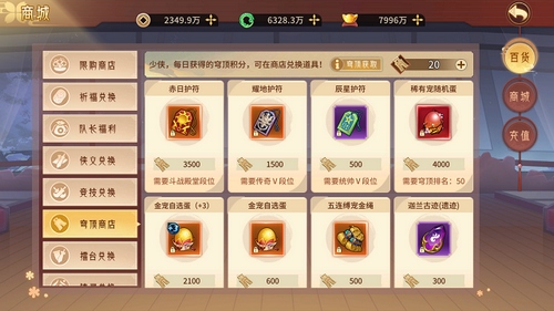里面的物品在玩家冲击某方面遭遇瓶颈时会有比较重要的作用,同时限购商店也具备一定应急商店的属性。