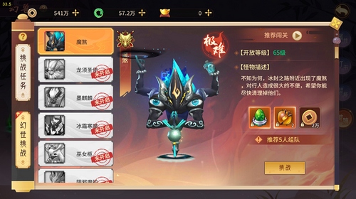 Ps:幻世挑战开放等级为65级,难度不易,推荐少侠5人组队前往哦~