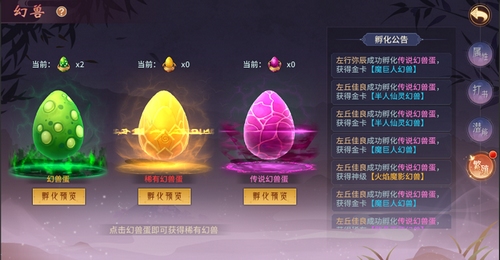 幻兽蛋分为3种品质,品质越高的幻兽蛋孵化出极品幻兽的概率越高!