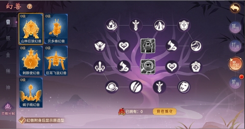 每个圣兽拥有自己的天赋树,天赋树上有18个点位,每个点位可升10级。使用乾元丹可以激活并升级天赋点位,点位有等级区分,只要前置点位到达一定等级才可以激活下一点位。