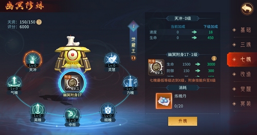 ①三魂系统:提升幽冥主动技能等级,提高幽冥属性。