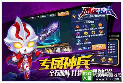《咸蛋超人》游戏中除了常规装备六件套,还有凌驾于其上的绝世杀器 —— 神兵!!!作为杀器,神兵当然不同凡响,从零转到九转,每提升一转,不仅神兵形态更加炫酷,而且神兵属性更是大幅提升。神兵在手,如虎添翼,战力提升一日千里。各式神兵,各显神通,血洗银河战场,摧毁黑暗势力。