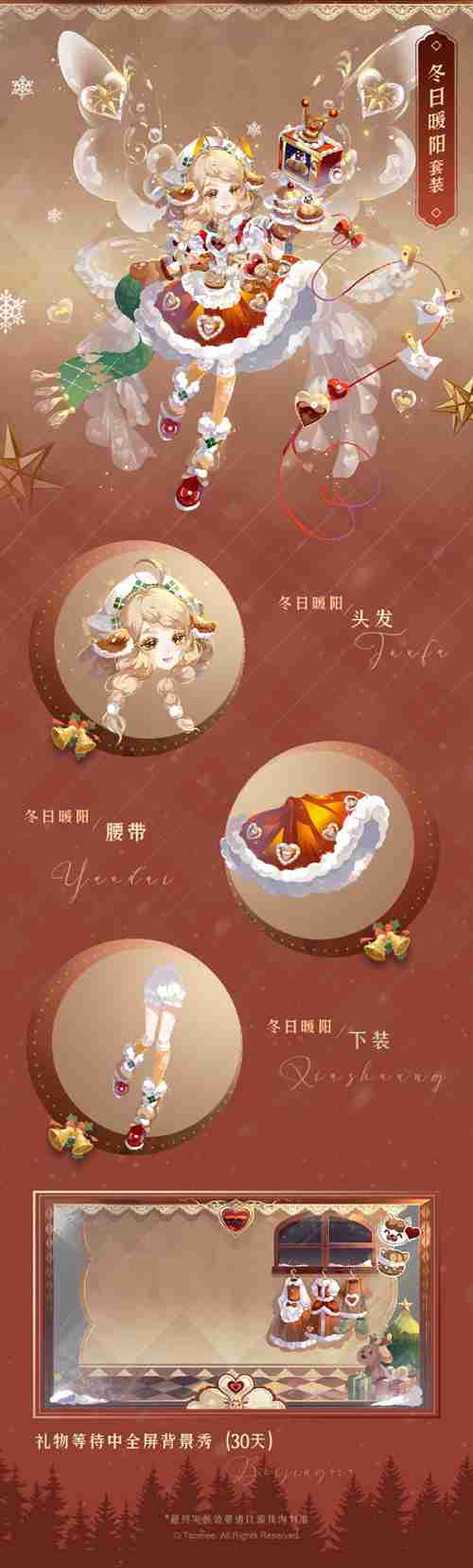集齐冬日暖阳套装,可获得对应美瞳及称号:冬日暖阳