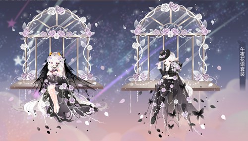 拥有午夜花语套装,可获得对应面妆及称号:午夜花语