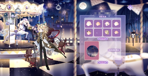 集齐狂欢巡游套装,可获得对应美瞳及称号:狂欢巡游