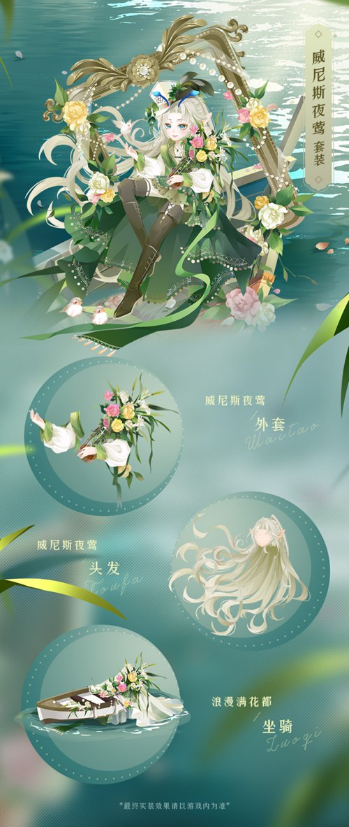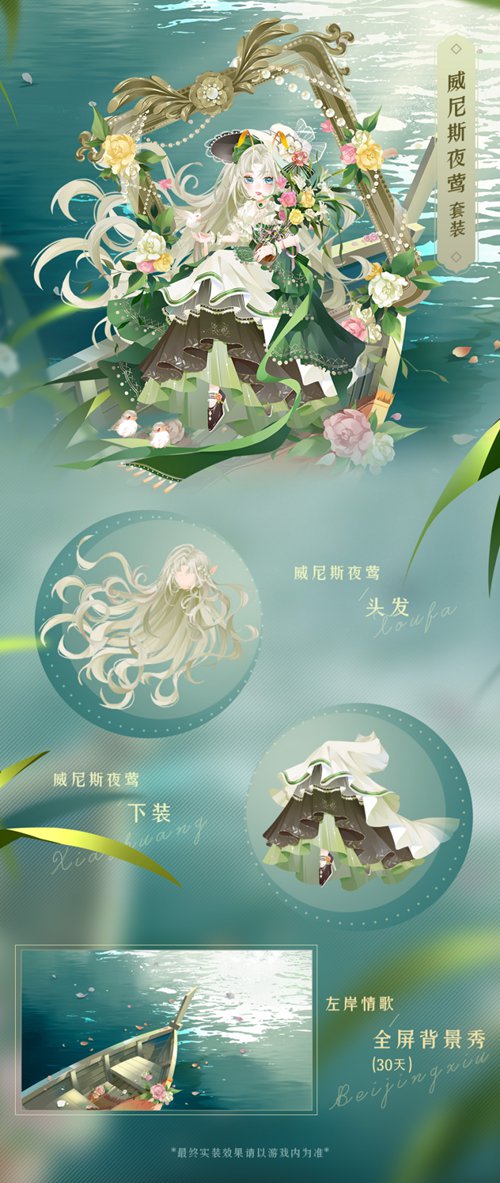 集齐【威尼斯夜莺套装】和【浪漫满花都坐骑】【碧草如丝舞台】即可领取:左岸情歌全屏背景秀(30天)。