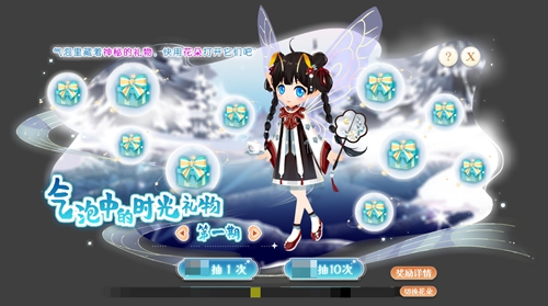 消耗花朵,可抽取绝版复出的贪吃萌小兔套装、紫色回忆套装、泡沫独角兽套装、慢赴茶会套装、糖果喵套装及其他道具奖励。