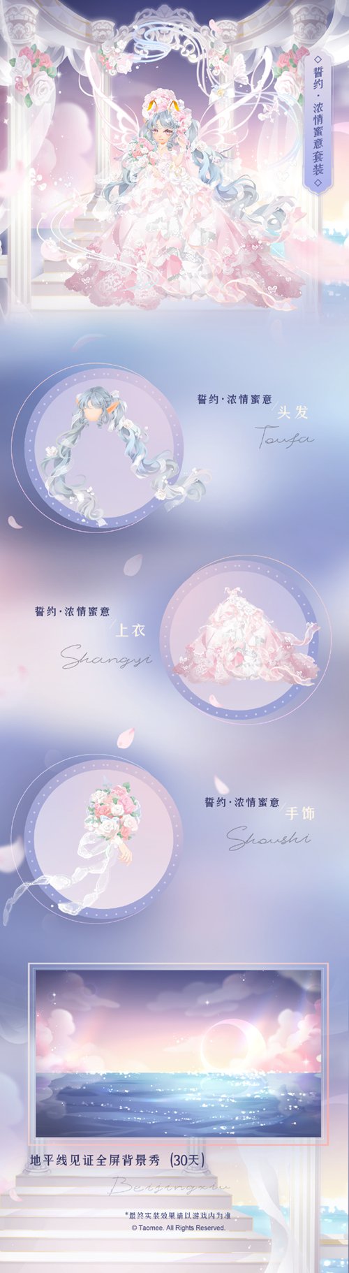 集齐誓约·浓情蜜意套装,可获得对应美瞳及称号:誓约·浓情蜜意