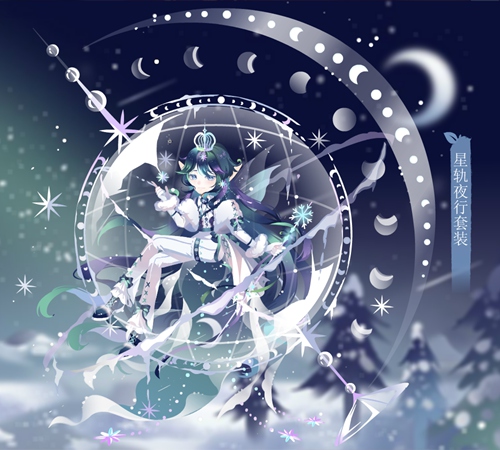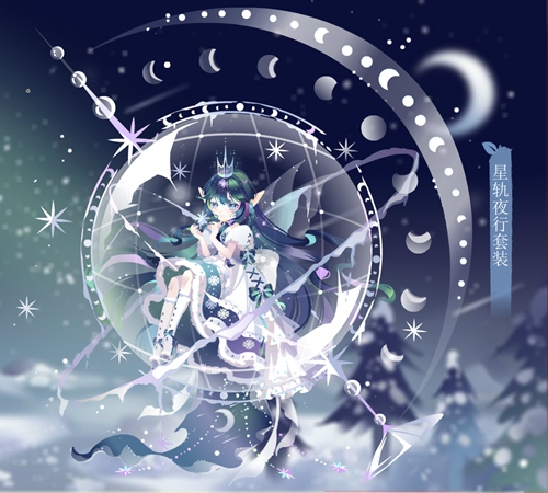 拥有星轨夜行套装,可获得对应面妆及称号:星轨夜行、雪夜流星全屏背景秀(30天)、雪夜松林背景秀装饰、极光夜行头发、极光夜行手饰(拥有极光夜行头发及手饰,可获得对应面妆)