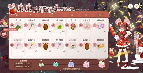 登陆游戏签到,即可获得:吱吱咬新春套装、花种、朱红无门槛抵用券50、水银镜、神叶碎片、神奇鱼饵补充装等奖励!