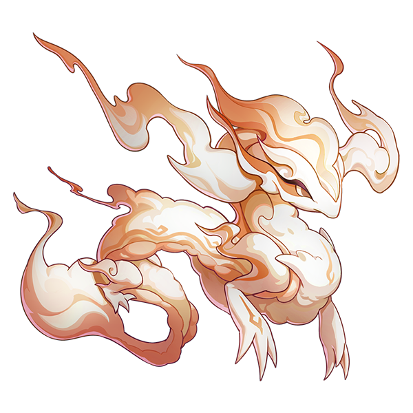 烟云龙藏身于火山的滚滚浓烟之中,或白或黑,或红或彩,身体的颜色会随浓烟而改变,能力也不尽相同。