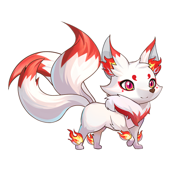 很自来熟的狐狸,有三条尾巴,爪部的毛发可以保护它在岩浆附近自如活动不被烫伤。