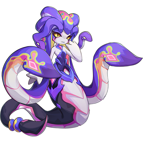魅彩蛇姬的性格如同它喷吐的颜料毒液一般,浓郁、热烈且充满表现欲。无论是喜悦、愤怒还是好奇,它的第一反应都是将周围的一切泼洒具有致幻挥发性的颜料,将内心情绪转换为外在的视觉奇观。