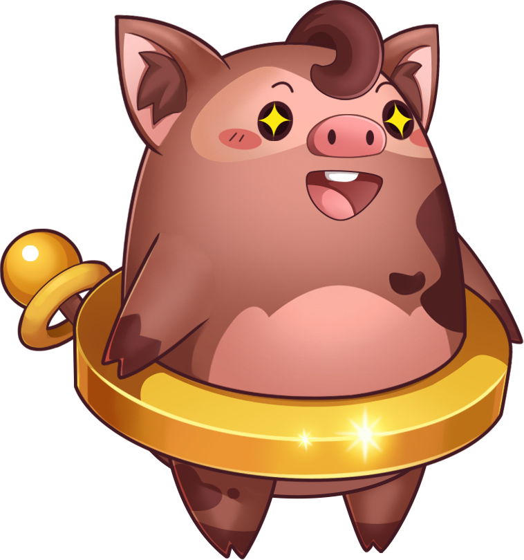 混迹于泥潭中的波克尼,却总能保持身上金圈的洁净。看到发光的东西就会很开心,所以波克尼保持愉快的方法是,低头看自己的肚皮。