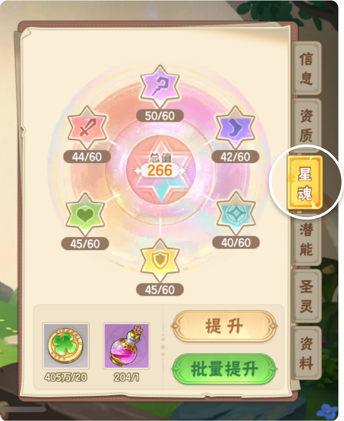 【星魂】在精灵星魂页面中,可查看星魂总值。
