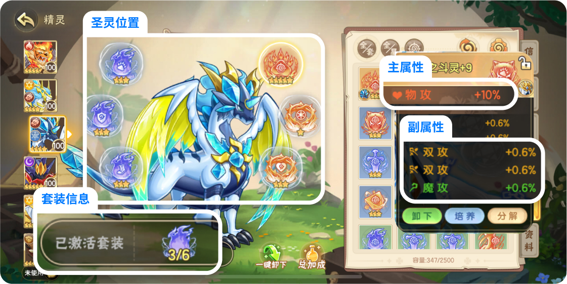 *圣灵等级每+3,解锁一个副属性。副属性未激活则放空