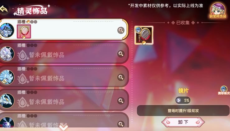 烈焰山精灵饰品系统上线,在冒险的途中,小西普们会在各种情况下收集到精灵饰品,精灵们可以携带饰品,饰品会赋予单个精灵独特的能力,不过要注意过量携带饰品将给精灵带来负作用。
