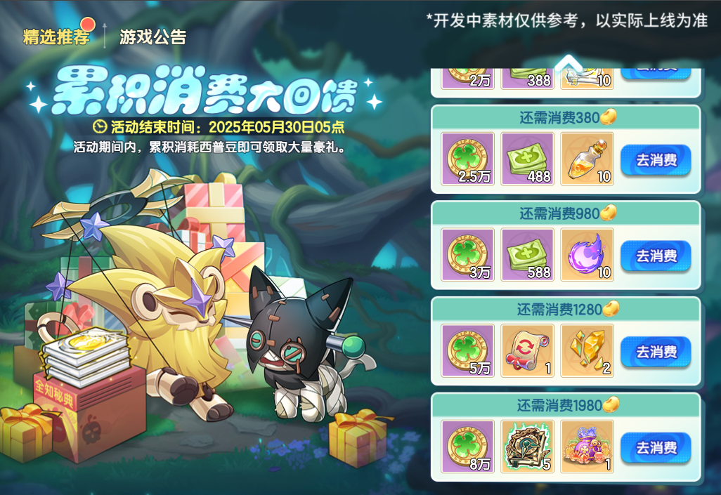 活动期间内,累积消耗西普豆达到对应金额即可领取相应的奖励!