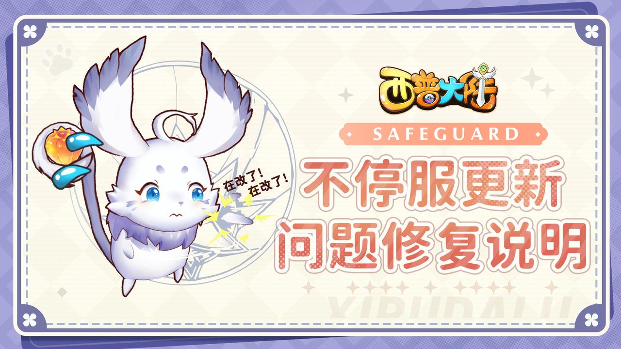 《西普大陆》手游拟于17:30~18:00进行不停服更新,本次不停服更新将对下方内容进行修复与优化,烦请各位小西普重新登录游戏并完成数据加载,以便体验最新版本内容,感谢小西普们的反馈与支持。