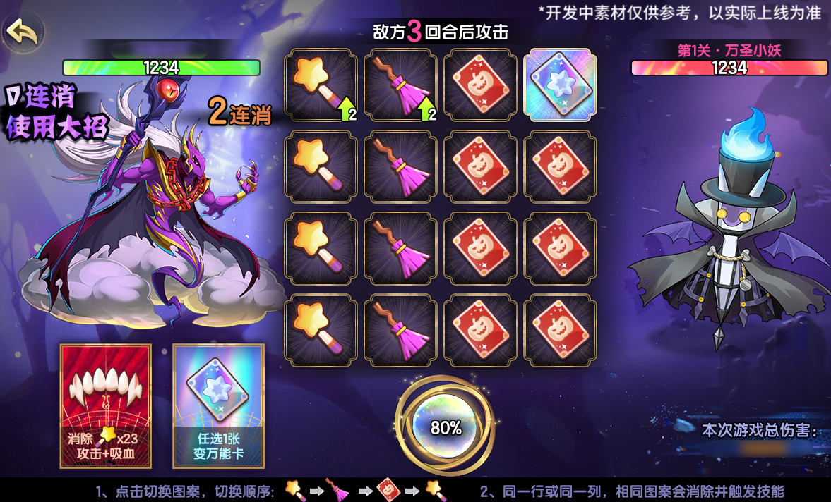 进入古神的视界接受挑战,点击卡牌可变化卡牌,横竖3张同样卡牌可自动消除并对敌人造成伤害,成功击败来袭的敌人将获得古神嘉奖,每次挑战击败的敌人越多奖励越丰厚哦!