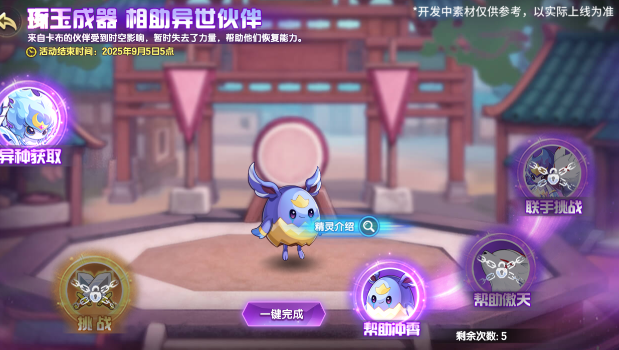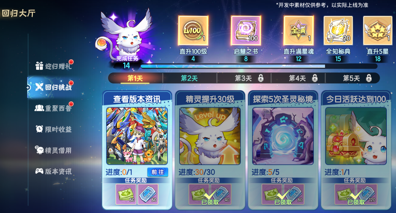 ①精灵借用:为回归的小西普提供借用精灵,可在大部分PVE的挑战中使用(天启BOSS挑战赛、远洋团等除外)