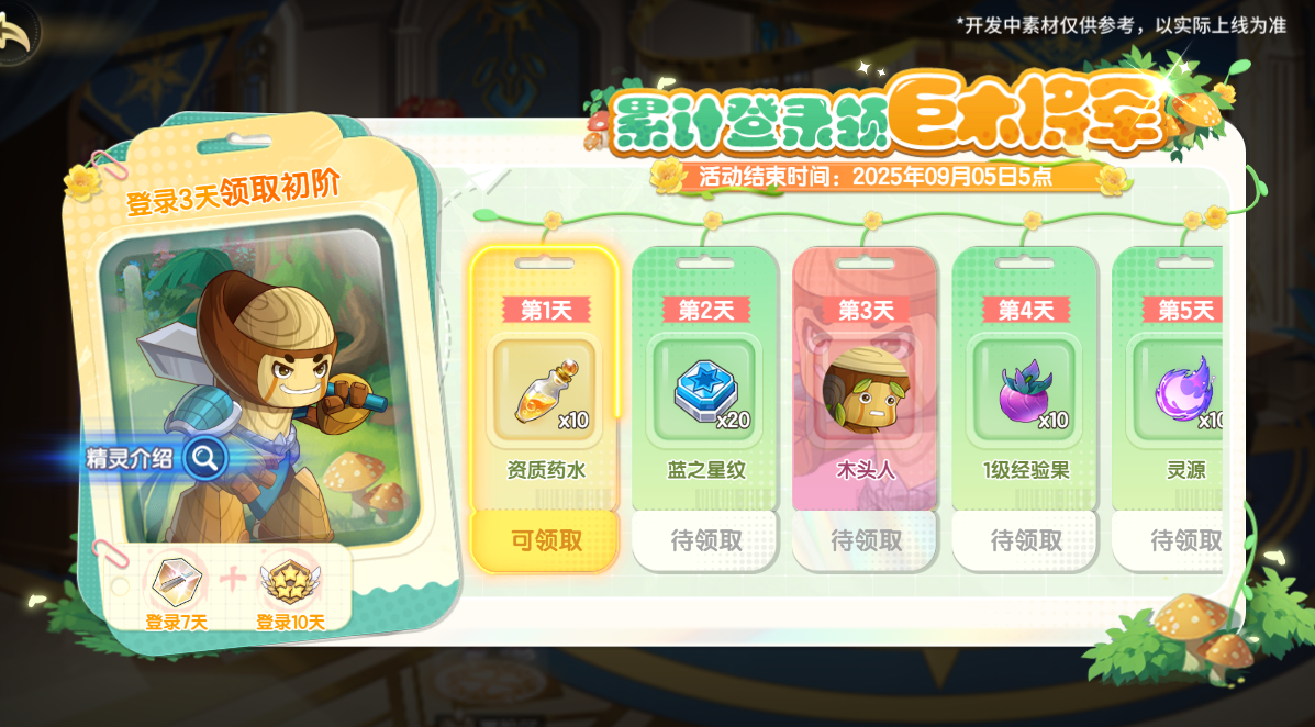 ①迎归赠礼:登录7日即可自选领取1只精灵(包括乖乖虎等神隐纪/圣灵纪中的精灵)