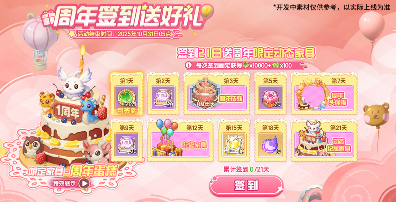 参与周年签到,累计签到对应天数,即可领取一周年限定家具、一周年限定成就以及头像框!在签到活动结束前,尚未完成签到的小西普们可通过使用西普豆进行补签,获取周年限定奖励。