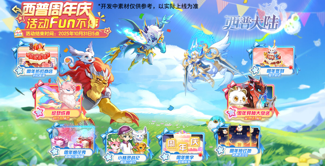 为感谢小西普们长久的支持与陪伴,西普大陆为大家准备了充值奖励大回馈。本次累充从2025年9月26日5:00开始计入,活动期间累计充值达到指定的金额即可领取对应的超值奖励。(购买年度精灵、通行证、基金等直购均计入累充额度)
