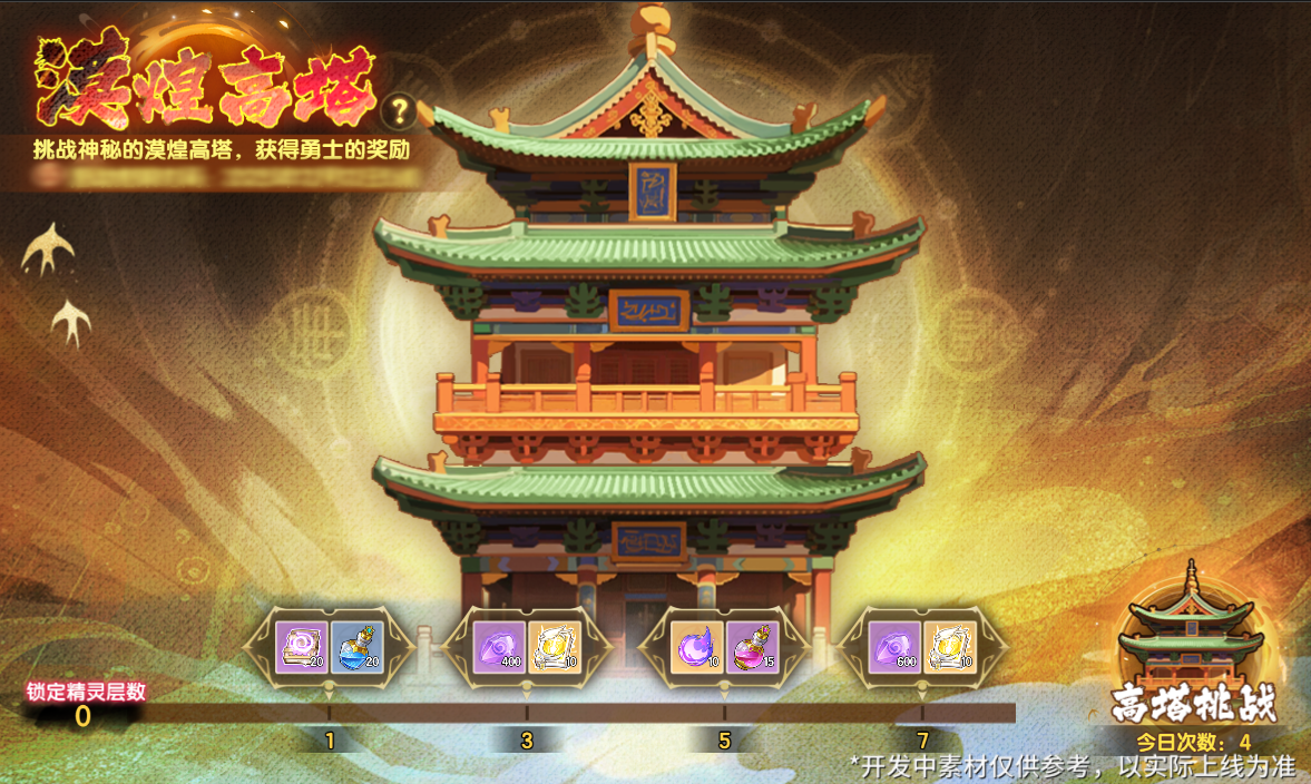 每层最多上阵3名精灵,每成功挑战1层后即可解锁下1层的挑战,部分层数通关后会获得高塔的赐福。上阵的精灵将锁定在通过的层数,同源精灵无法在其他层数挑战。