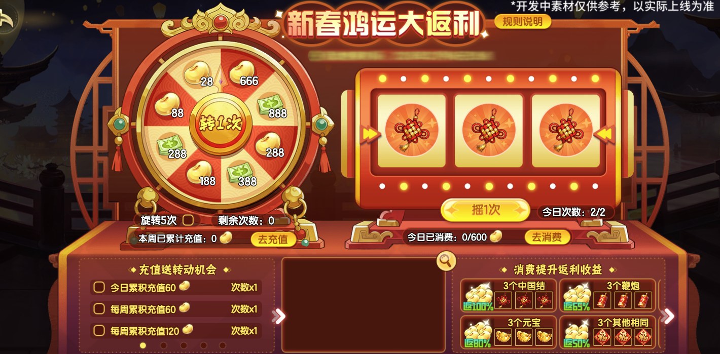 每日以及每周充值金额达到相应条件,可获得对应的占卜次数,每次可返回西普豆或点券奖励,最高可获得666西普豆。每日消费西普豆后还可抽取图案,图案组合达成对应的返利条件,即可返还一定比例的西普豆。