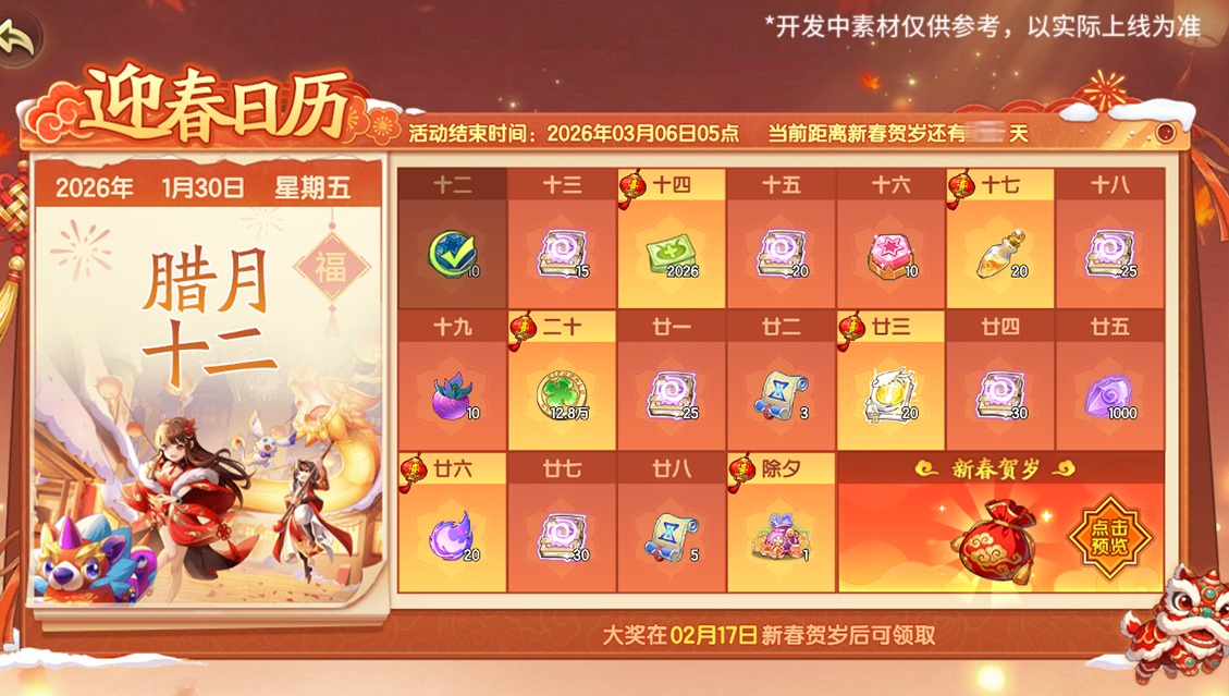 活动时间:2026年1月30日更新后~3月6日5点