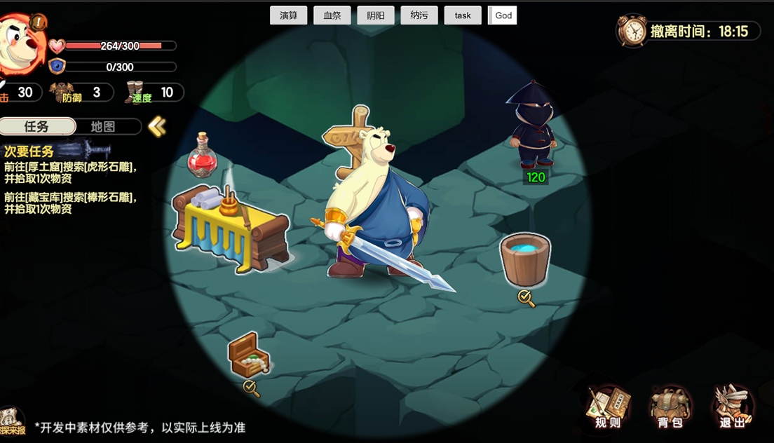 要点三:限时撤离 在倒计时结束前找到“密道”安全撤离,把背包里的宝物带出来兑换奖励。