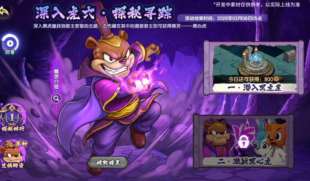 活动时间:2026年2月6日更新后~3月6日 5:00 活动奖励:异种·黑心虎,精灵·黑心虎、联动家具、黑心虎头像、封灵碎片、恒守神谕等奖励