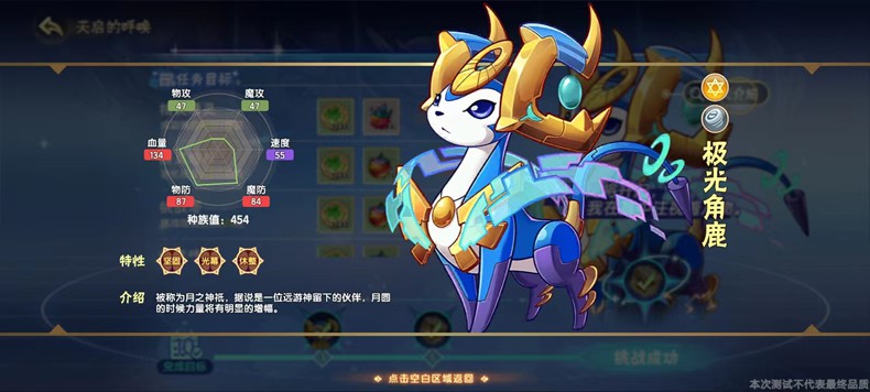 极光角鹿的光能屏障可以提升自身魔防,在挑战时可优先考虑物理攻击。
