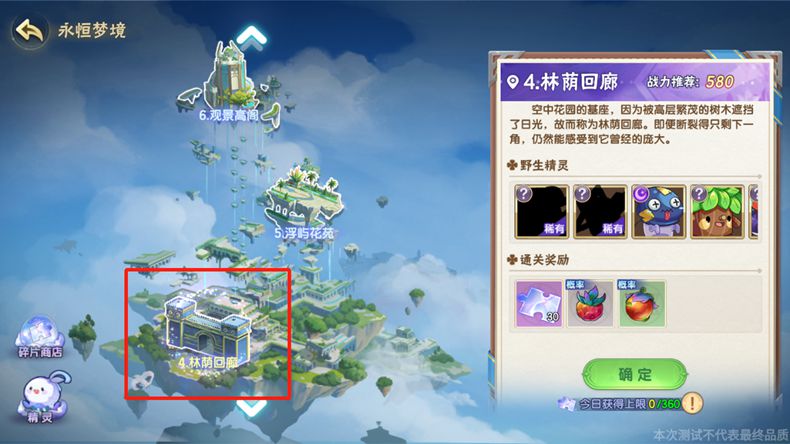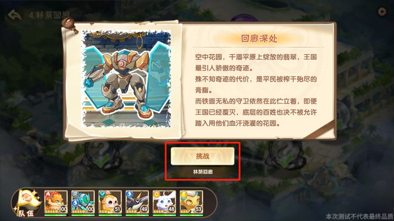 进入第4关后,先完成前面的几个探险关卡,会到达最终场景:回廊深处,点击“挑战”便可来到林荫回廊