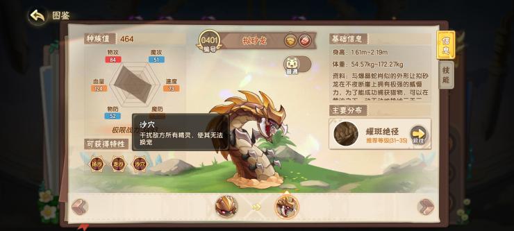 拟沙龙可以很好的抓明王和玲珑,沙穴特性限制换宠,龙系技能克制明王,岩系技能克制玲珑,同时还有高魔防