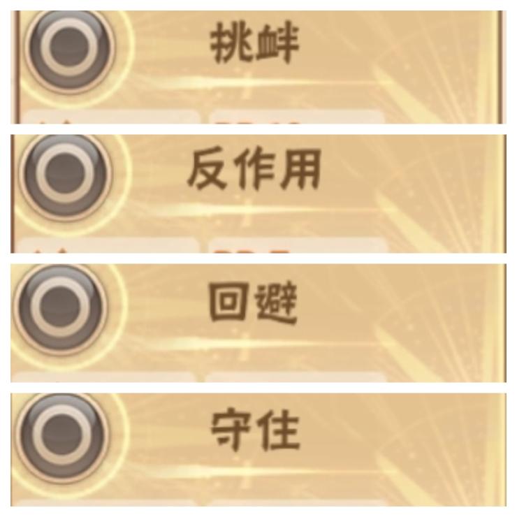 ①挑衅:可以让对方放不出辅助技,如果对方在挑衅状态下选择了辅助技能,将会无法行动(罚站)