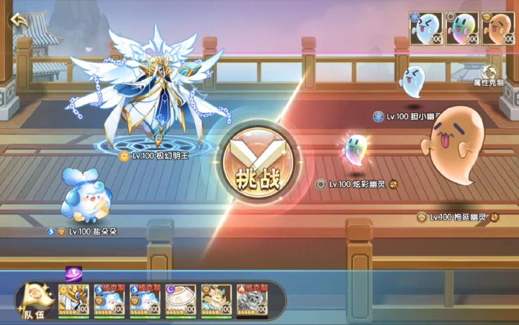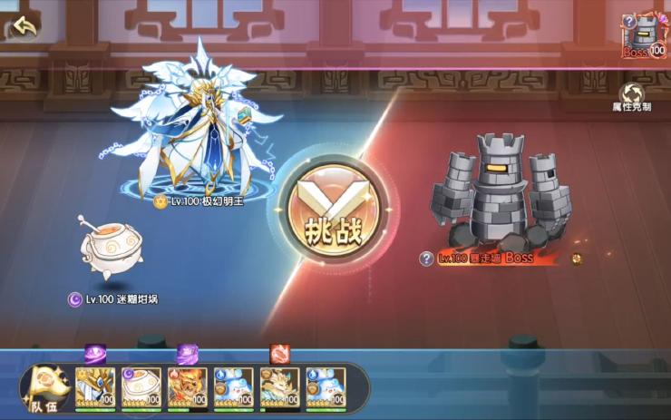开局上坩埚和盐朵朵,坩埚用毒气,朵朵用沙尘暴;然后把朵朵换成卡尔斯使用链接连击的技能打炫彩小幽即可,明王也可开大挂灼烧,这样打的快一些!