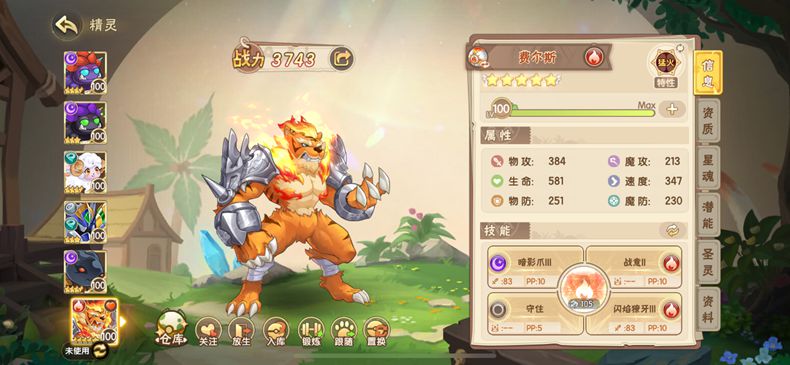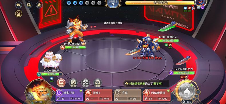 蛋糕羊和费尔斯保证4级物防状态,老虎等大招能量;两只精灵状态不佳的时候,记得使用血瓶回血