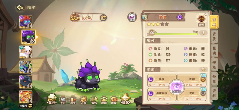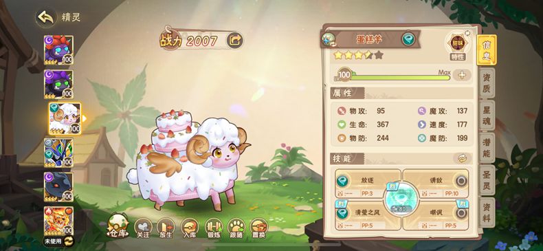 蛋糕羊保持4级物防,稳定喂鱼让老虎也达到4级物防,老虎提高攻击,达到4级攻击