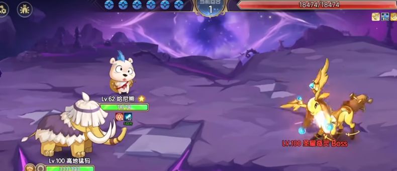 第二回合,高地猛犸继续使用钢牙突击降低物防,哈尼熊阵亡后上混沌剑骨