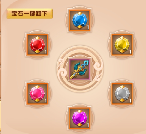 3.装备镶嵌:装备可进行宝石镶嵌。随着装备品质的增加,可镶嵌更多、更高品质的宝石。一般而言我们选择生命、魔法、攻击、暴击、闪避、幸运进行镶嵌。