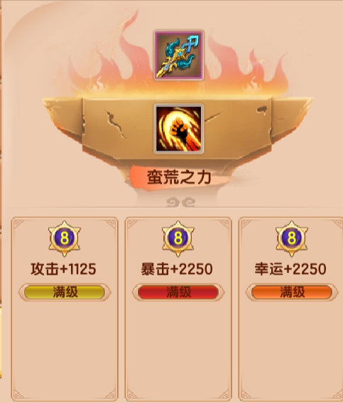 ①战力套:攻击、闪避、幸运、暴击、回血、回魔