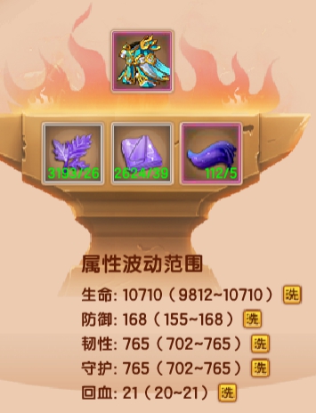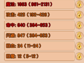 ④狮子套:魔法、攻击、闪避、暴击、幸运、回魔。