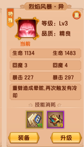 技能秘籍:技能秘籍提供了额外的属性与技能特效,某些技能秘籍的效果无论是PVE,还是PVP的效果都非常好。但是技能秘籍的获取难度相对较高。如零氪的话只能通过龙宫与各类活动白嫖,但是白嫖秘籍的优先级是低于幻兽的,所以我们往往不会有太多闲置资源来获取秘籍。只有在龙宫的时候,才能够白嫖到一定的秘籍数量。龙宫通常来说,一年2-3次。我们在白嫖秘籍的时候,应该优先选择,附加属性为攻击的秘籍以及有特殊效果的异属性秘籍他(注:悟空的烈焰闪·异效果需根据个人情况选择)。