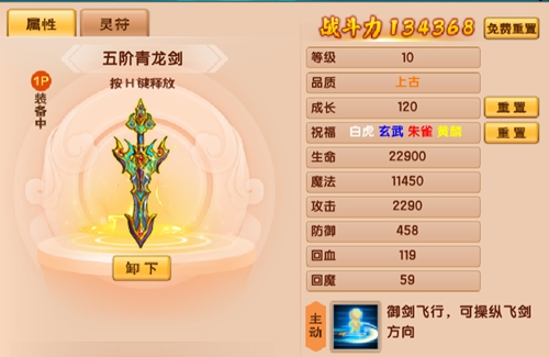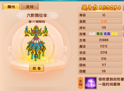 ②战力法宝为:青龙剑(氪金获得,200R点券左右,不是必须项)、混元珍珠伞(很不错的战力法宝)、两仪伞(不打PVP可做战力法宝)。战力法宝祝福无须青龙,最佳搭配为白朱黄玄。