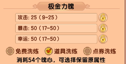 法宝洗练材料:完全不推荐点券购买。洗练成长、祝福,可通过宝券兑换。另附法宝洗练方法:先用可以白嫖的爬塔掉落材料,洗到满祝福,后用成长洗练洗出满成长即可。在法宝最高阶的时候开始洗即可,前期不要洗或者VIP免费洗。