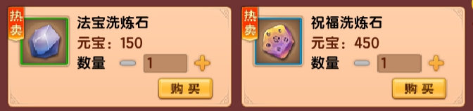 法宝洗练石:不推荐购买,有需求更推荐宝券。